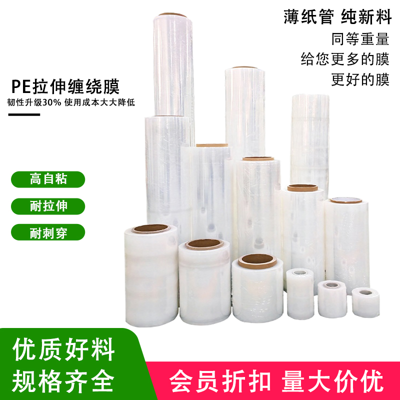 现货#pe缠绕膜厂家包装膜打包膜工业保鲜膜大卷塑料薄膜拉伸膜