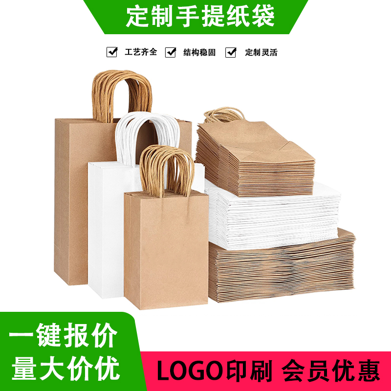 定制#牛皮纸袋印刷logo 批发外卖手提纸袋定做圣诞节礼品手提袋子